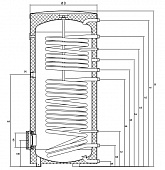 Технические хар-ки: объём 300л.,защищен от коррозии,теплоизоляция 50мм. Из мягкой пены,высота 1834 мм.,ширина: 600мм.,вес :106 кг. Поверхность нагрева 0,8/1,55 м2 -
