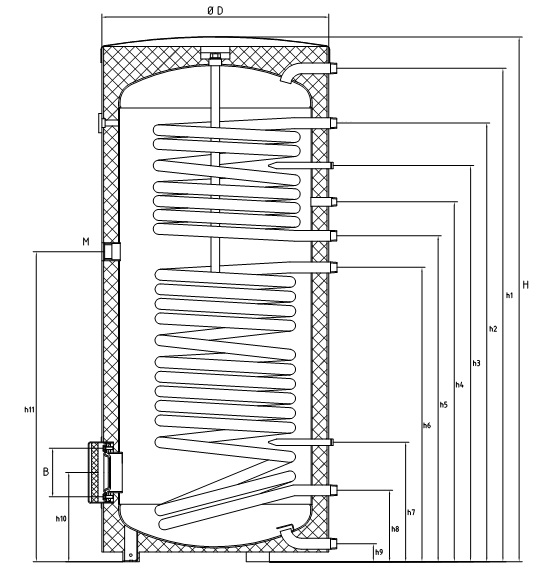 Вертикальный водонагреватель с двумя сварными теплообменниками.