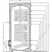 Технические хар-ки: объём 300л.,защищен от коррозии,теплоизоляция 50мм. Из мягкой пены,высота 1834 мм.,ширина: 600мм.,вес :106 кг. Поверхность нагрева 0,8/1,55 м2